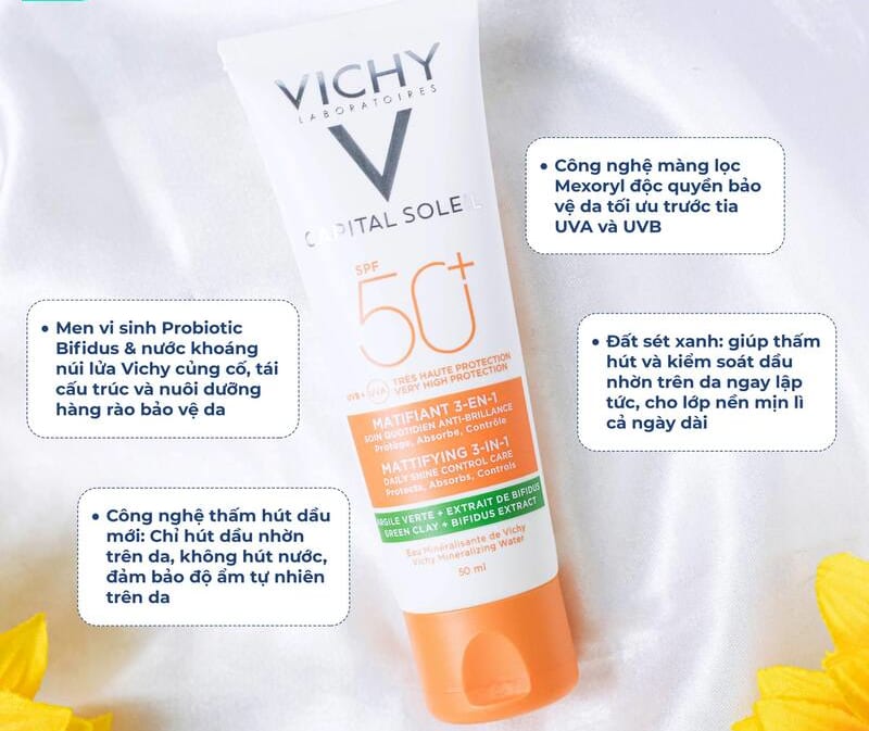 کرم ضد آفتاب Vichy Capital Soleil 3in1 یک محصول حرفهای با عملکرد چندگانه است که علاوه بر محافظت قوی در برابر اشعه های UVA و UVB، خاصیت ضد پیری دارد و از ایجاد لکه و چین و چروک ناشی از نور آفتاب جلوگیری میکند. این ضد آفتاب با فرمول سبک و جذب سریع، بدون ایجاد سنگینی و چربی روی پوست، آن را روشنتر، یکدستتر و سالمتر نشان میدهد.