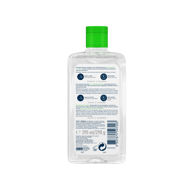 این محصول با ترکیب میسلها، سرامیدها و هیالورونیک اسید، به پاکسازی آرایش، آلودگی و چربی اضافه پوست کمک میکند بدون اینکه پوست خشک یا تحریک شود.