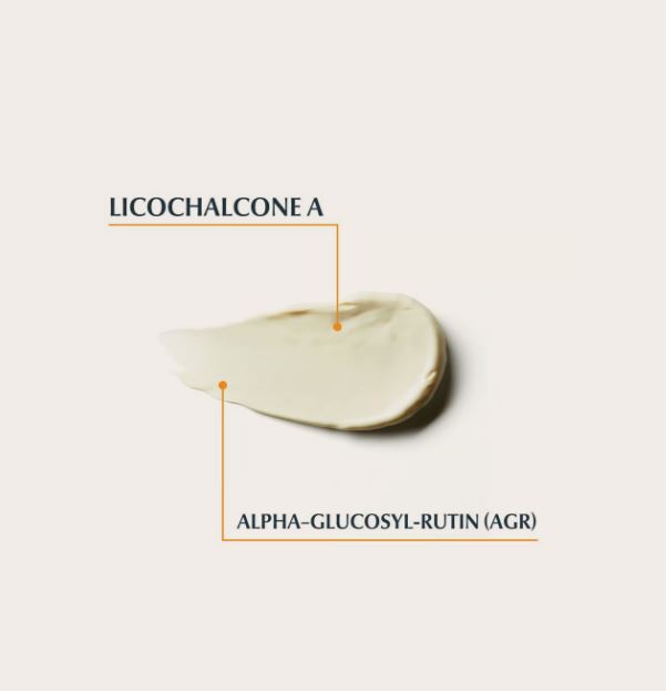 وجود Licochalcone A (آنتیاکسیدان) به کاهش اثرات مخرب نور خورشید و HEVIS Light کمک میکند و از استرس اکسیداتیو جلوگیری میکند.