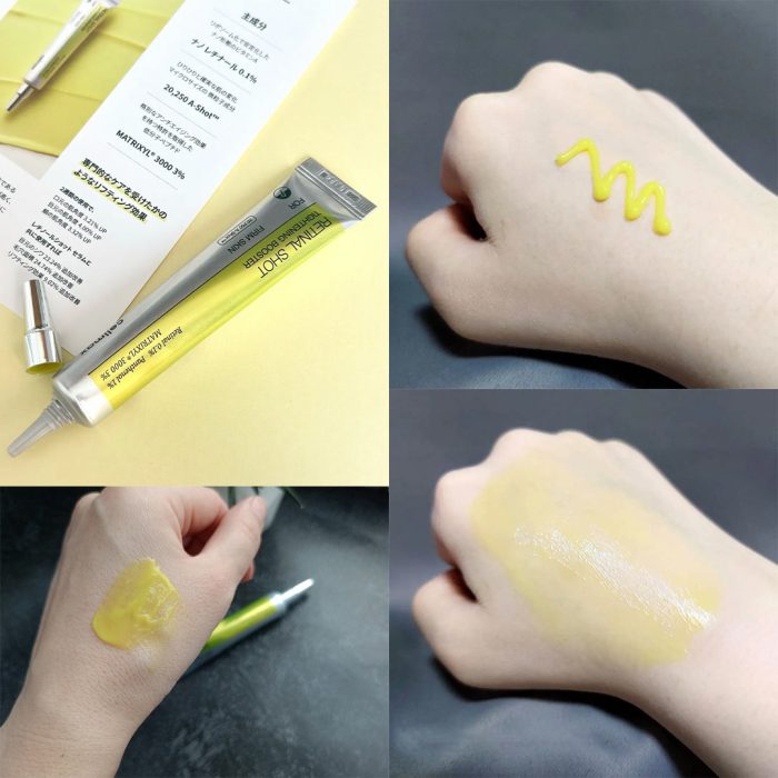 🌿 ترکیبات کلیدی محصول Retinal (رتینال ۰.۱%): ضدپیری، کاهش چروک و بهبود بافت پوست Niacinamide (نیاسینامید): روشنکننده، کاهش لک و تقویت سد دفاعی Panthenol (پانتنول ۱%): آرامبخش، مرطوبکننده و ترمیمکننده Palmitoyl Tripeptide-1 & Palmitoyl Tetrapeptide-7 (ماتریکسیل ۳%): افزایش کلاژن و الاستیسیته A-Shot™ (۲۰,۲۵۰ ppm): ذرات میکرو برای نفوذ عمیق و تحریک پوست Tocopherol (ویتامین E) & Ascorbic Acid (ویتامین C): آنتیاکسیدان و محافظت