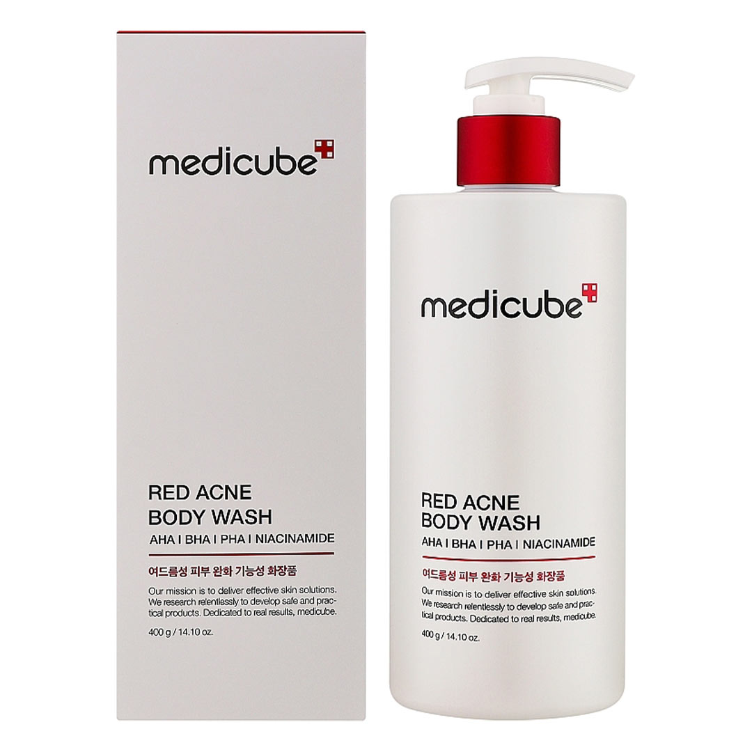 شوینده بدن Red Anti-Acne Body Wash از برند Medikube یک ژل شستوشوی تخصصی بدن است که مخصوص پوستهای مستعد آکنه، جوش و التهابدار فرموله شده است. این شوینده با ترکیبات فعال و لطیف، نهتنها آلودگی، چربی اضافی و سلولهای مرده را از پوست بدن پاک میکند، بلکه به کنترل باکتریهای مولد جوش، کاهش قرمزی و التهاب نیز کمک میکند.